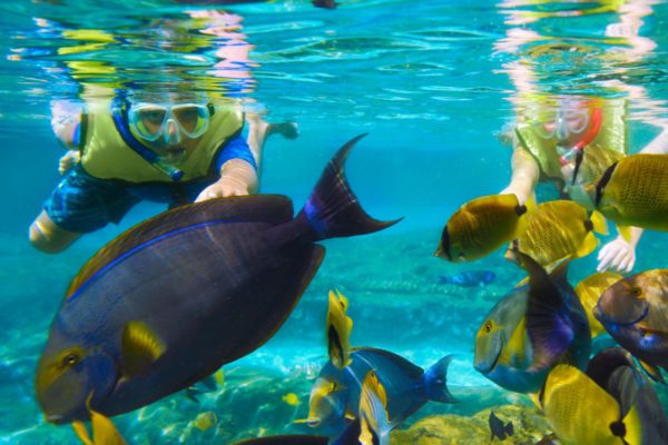 Snorkeling at Pineapple Bay, surrounded by colorful coral reefs and fishes |